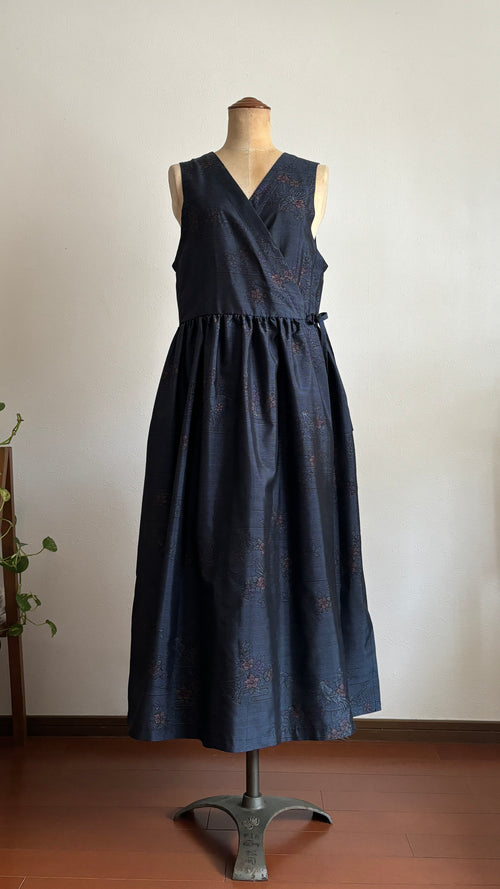 03-\ さえずり花 -SAEZURIBANA- / 大島紬カシュクールワンピース 身幅44cm 着丈116cm
