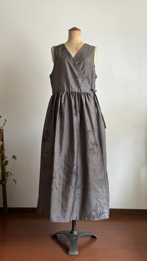 08-\ 利休更紗 -RIKYUUSARASA- /大島紬カシュクールワンピース 身幅48cm 着丈118cm